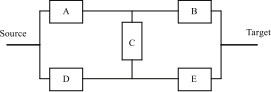 以圖1為例,可以看出最小割集為(A,D)、(B,E)、(A,C,E)、(B,C,D)。