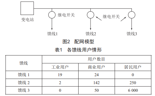 圖2所示為固原市某區(qū)域的配網(wǎng)結(jié)構(gòu)圖,包含3個饋線,各饋線負(fù)荷類型如表1所示。饋線1由工業(yè)、商業(yè)用戶組成,其供電可靠性要求最高,停電損失成本最大:饋線2主要由商業(yè)用戶組成,停電成本較饋線1低:饋線3主要由居民用戶組成,停電成本最低。