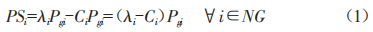 式中,A為節(jié)點(diǎn)邊界電價,Ai為第i個發(fā)電單元售電電價:NG表示系統(tǒng)發(fā)電電源總數(shù):Ci為第i個發(fā)電單元投資單價:Pgi為第i個發(fā)電單元發(fā)電量。