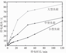 根據(jù)不同體量的居民小區(qū),本文分別建立了小型、中型、大型居民負(fù)荷的停電成本模型,該模型反映了停電成本與停電時長的映射關(guān)系,如圖5所示。
