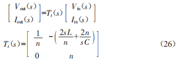 因此 ,變壓器的雙端口傳輸矩陣是由公式(26)給出的: