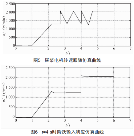 直升機(jī)尾獎(jiǎng)系統(tǒng)通過(guò)獎(jiǎng)距變化來(lái)平衡旋翼產(chǎn)生的扭矩,實(shí)現(xiàn)航向操縱,獎(jiǎng)距的變化通過(guò)改變尾獎(jiǎng)的獎(jiǎng)距角實(shí)現(xiàn)。通常,直升機(jī)飛行過(guò)程中需要經(jīng)常調(diào)整尾獎(jiǎng)系統(tǒng)來(lái)實(shí)現(xiàn)飛行控制,因此需要尾獎(jiǎng)驅(qū)動(dòng)系統(tǒng)有較高的響應(yīng)速度、較好的轉(zhuǎn)速控制精度、良好的負(fù)載響應(yīng)特性。為實(shí)現(xiàn)對(duì)高功率密度電機(jī)及其控制性能的全面仿真測(cè)試,本文進(jìn)行了響應(yīng)速度仿真測(cè)試、轉(zhuǎn)速控制精度仿真測(cè)試、負(fù)載響應(yīng)仿真測(cè)試等。