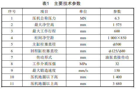 智能數(shù)控鍛壓機(jī)主要技術(shù)參數(shù)如表1所示。