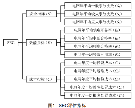 基于對(duì)精益化生產(chǎn)管理的深入研究,為統(tǒng)籌安全(safety)、效能(Efficiency)、周期成本(Cost)三者的關(guān)系,優(yōu)化資源配置,提高管理水平和運(yùn)行效益,國家電網(wǎng)公司提出了基于安全效能成本(safetyEfficiencyCost,SEC)指標(biāo)的管理理念。SEC表示在安全、效能水平相當(dāng)?shù)那闆r下,單位(容量)資產(chǎn)每單位有效利用時(shí)間對(duì)應(yīng)的總成本,該指標(biāo)的單位是元/kVA。其中安全是指對(duì)電網(wǎng)、設(shè)備、人身事故的控制能力:效能是指電網(wǎng)企業(yè)綜合平衡可靠性及利用率最優(yōu),以高效資產(chǎn)運(yùn)行滿足供電服務(wù)水平要求:周期成本是指電網(wǎng)資產(chǎn)在全壽命周期成本方面的表現(xiàn)。