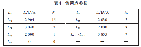 配電網(wǎng)負(fù)荷點(diǎn)LP1~LP12的功率因數(shù)均為0.85,各負(fù)荷點(diǎn)的用戶數(shù)及負(fù)荷大小保持不變,如表4所示。由表4可知,LP4的供電線路為備用線路,正常運(yùn)行時(shí)不帶負(fù)荷,且電網(wǎng)正常運(yùn)行時(shí)聯(lián)絡(luò)線斷路器不投入,相應(yīng)設(shè)備的E4j按10%計(jì)算。除LP4外,其余負(fù)荷點(diǎn)為電壓合格率的檢測節(jié)點(diǎn)。
