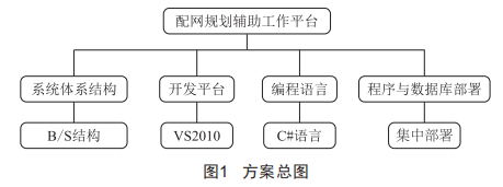 配網(wǎng)規(guī)劃基礎(chǔ)數(shù)據(jù)體量非常龐大,但大部分?jǐn)?shù)據(jù)具有重復(fù)性,如每條線路、每個(gè)臺區(qū)其基礎(chǔ)數(shù)據(jù)涉及的項(xiàng)目是一致的。重復(fù)性的篩選、判別工作對于人來說容易產(chǎn)生疲勞感,此外,處理龐大數(shù)據(jù)量對于人來說也容易出錯,但對于執(zhí)行機(jī)器語言的計(jì)算機(jī)來說,重復(fù)性運(yùn)算與數(shù)據(jù)處理能力正是其強(qiáng)項(xiàng)。為有效提高數(shù)據(jù)校驗(yàn)準(zhǔn)確性,計(jì)劃搭建配網(wǎng)規(guī)劃輔助工作平臺。選擇電腦配置要求低、零維護(hù)、易擴(kuò)展的B/s結(jié)構(gòu)作為系統(tǒng)體系結(jié)構(gòu):選擇適用于計(jì)算機(jī)軟件開發(fā)、建模靈活的Vs2010軟件作為使用軟件:選取C#語言作為開發(fā)語言:選擇訪問速度、經(jīng)濟(jì)性、運(yùn)維便捷性、適用性均占優(yōu)勢的集中式部署方式作為程序與數(shù)據(jù)庫部署方式(圖1)。