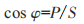 已知有功P和視在功率s,可得線路功率因數(shù)cos2: