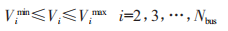式中,vi代表節(jié)點(diǎn)i的電壓:vimin與vimax為節(jié)點(diǎn)電壓的上限和下限。