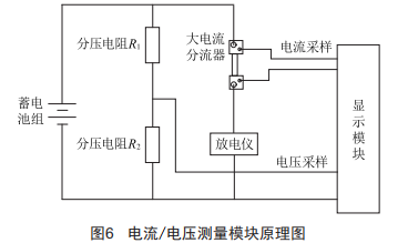電流/電壓測量模塊實(shí)現(xiàn)對放電過程中的電流、電壓進(jìn)行監(jiān)測和顯示,由數(shù)碼顯示模塊、分流電阻、分壓電阻組成,原理如圖6所示。