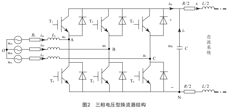由此,VSC-HVDC一次側(cè)的系統(tǒng)結(jié)構(gòu)可簡化為如圖2所示的三相電壓型換流器結(jié)構(gòu)。