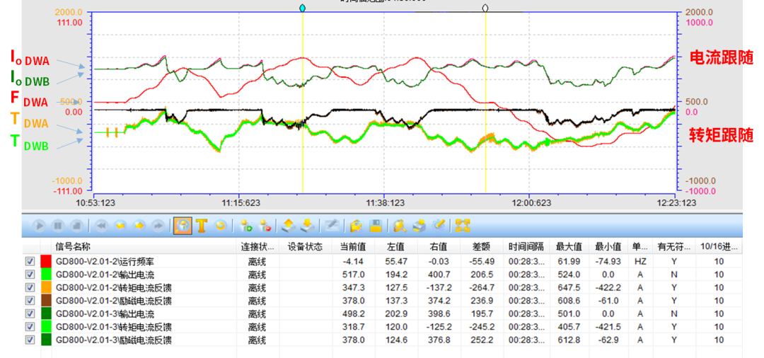 主從控制 ——絞車,負(fù)荷分配不受速度影響,恒功率弱磁控制A、B絞車轉(zhuǎn)矩同步保持一致。