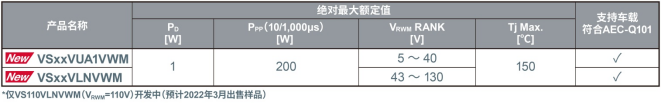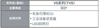 ?VS系列(PMDE封裝)的產(chǎn)品陣容表