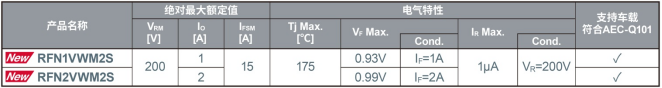 ?RFN系列(PMDE封裝)的產(chǎn)品陣容表
