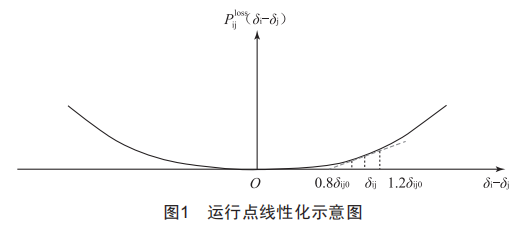 隨后,將上式代入數學模型中進行計算,得到基于預處理模型的相角差初值θij0。由于原模型θij和預處理模型θij0的值非常接近,因此可對θEQ \* jc3 \* hps10 \o\al(\s\up 3(進行如圖l所示的運行點線性化。