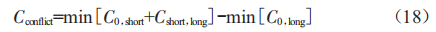 漸進規(guī)劃模型是在多階段規(guī)劃模型的基礎上考慮了短期規(guī)劃與長短期規(guī)劃沖突程度的協(xié)調,并且在決策中主觀賦予不同的權重。首先需量化長期規(guī)劃對于當前短期規(guī)劃的影響,定義長、短期規(guī)劃最小成本沖突量為: