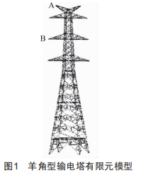 隨著我國(guó)經(jīng)濟(jì)不斷發(fā)展,人們對(duì)電力的需求量日益增加,為滿足人們的用電需求,電力企業(yè)興建了大量輸電線路。輸電塔是電力系統(tǒng)的動(dòng)脈,也是成功輸送電能的基本保障。因此,如何保障電力輸電系統(tǒng)安全、穩(wěn)定的運(yùn)行至關(guān)重要。輸電塔形式種類繁多,主要分為羊角型、干字形、F型等。其中,羊角型輸電塔因塔頂端為V字形,導(dǎo)線采用水平布置的方式,能有效降低塔結(jié)構(gòu)施工的繁瑣程度,建造輸電塔時(shí)采用的鋼材量較小而得到了廣泛應(yīng)用。