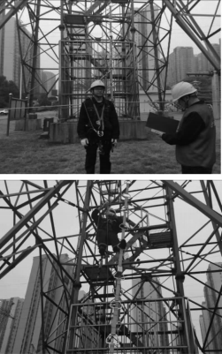 本次研究成果首先經(jīng)過試驗(yàn)合格后,課題組組織在培訓(xùn)場地進(jìn)行試驗(yàn)應(yīng)用,課題小組通過對新研制產(chǎn)品和傳統(tǒng)爬梯產(chǎn)品對比操作,經(jīng)過使用人員鑒定,—致反映采用兩端固定式爬梯,輕便省力,操作便捷,特別是上升和下降繩索裝置在作業(yè)中可以解放雙手,停留在空中指定位置作業(yè),對檢查、拍照等作業(yè)有很大幫助。產(chǎn)品現(xiàn)場試用情況如圖13所示。
