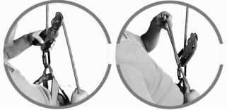 (2)主爬梯收緊裝置手柄處于朝下方向時,可將收緊的扁帶松出,以便取下爬梯。