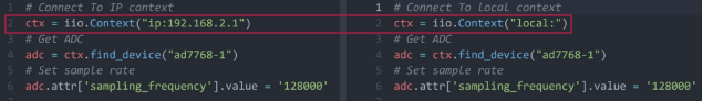 圖4. libIIO遠(yuǎn)程與本地示例