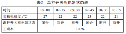 經(jīng)過測試,交換機溫度超過22℃時,溫控開關(guān)斷電器閉合,啟動散熱單元,否則斷開斷電器,正確率達100%,符合目標要求。