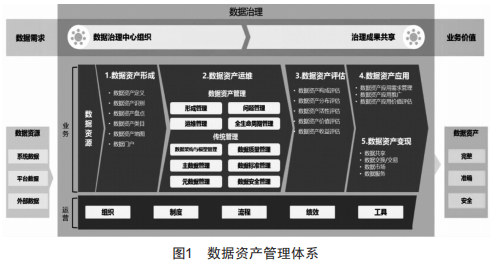 目前,電網(wǎng)企業(yè)大數(shù)據(jù)中心已經(jīng)構(gòu)建起涵蓋元數(shù)據(jù)、主數(shù)據(jù)、數(shù)據(jù)標準、數(shù)據(jù)安全、數(shù)據(jù)質(zhì)量管理等方面的數(shù)據(jù)資產(chǎn)管理體系,打造了一套先進的數(shù)據(jù)資產(chǎn)管理平臺工具,初步實現(xiàn)了從"數(shù)據(jù)資源管理"到"數(shù)據(jù)資產(chǎn)管理"的轉(zhuǎn)變。數(shù)據(jù)資產(chǎn)管理體系如圖1所示。