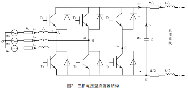 由此,VsC-HVDC一次側(cè)的系統(tǒng)結(jié)構(gòu)可簡化為如圖2所示的三相電壓型換流器結(jié)構(gòu)。