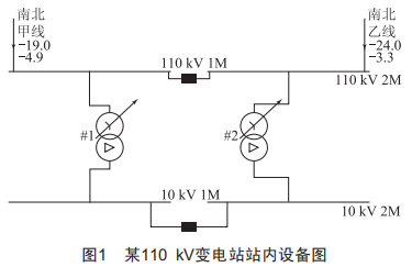 下面以某110kV變電站舉例說(shuō)明,如圖1所示,模擬"單一變電站全失所有電壓等級(jí)母線全失"條件下的基準(zhǔn)風(fēng)險(xiǎn)計(jì)算過(guò)程和結(jié)果。