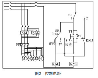 在設計控制電路時要求:(1)當時間達到指定時間,gs時間繼電器切換到位置2,啟動通風裝置,系統(tǒng)控制風機正轉,配電站內正常通風。(2)如果未到指定時間,但是如果可手動轉換開關gB,啟動除塵裝置正轉或者反轉:溫度達到設定溫度值,除塵裝置開啟:達到指定濕度值,通風裝置開啟。
