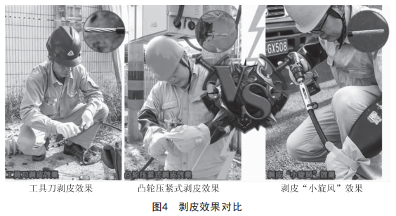 將3種剝皮器(工具刀、凸輪式剝皮器、新型電動剝皮器)的剝皮效果進行對比: