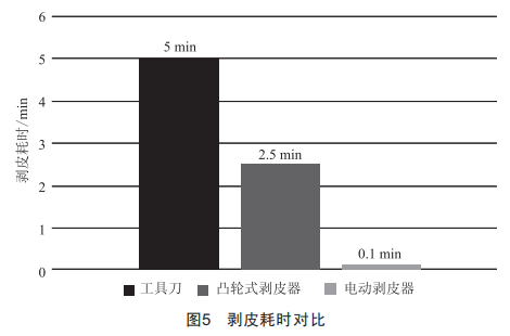 傳統(tǒng)剝皮工具剝皮需要耗費5min,新型剝皮器僅需要0.1min,剝皮時間減少98%,耗時顯著減少,實現質的飛躍。剝皮耗時對比如圖5所示。