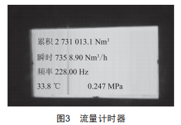 流量計為2019年7月30日17:00安裝完成,8月3日08:00開始計量,改造前系統(tǒng)為雙套管形式,瞬間流量為7358.90Nm3/h,如圖3所示。