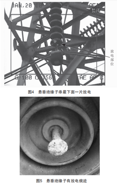 2016年1月,巡檢發(fā)現(xiàn)柘蘇乙線#1塔上B相跳線懸垂絕緣子串存在放電聲音,通過(guò)紫外成像儀檢測(cè),直接發(fā)現(xiàn)最下面一片絕緣子存在放電情況,分析原因?yàn)樽钕乱黄^緣子存在臟污或損壞,如圖4所示。2017年1月,停電時(shí)拆下絕緣子檢查存在嚴(yán)重臟污情況,且金屬部件不再光滑,存在嚴(yán)重放電痕跡,如圖5所示。更換新的絕緣子后,線路運(yùn)行正常。紫外成像儀檢測(cè)以直觀、高效、快速定位等特點(diǎn),對(duì)電氣設(shè)備的外絕緣檢測(cè)起到了重要作用。