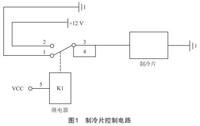 溫控系統(tǒng)采用PwM模式驅(qū)動(dòng)半導(dǎo)體制冷片。當(dāng)PwM控制信號(hào)處于低電平時(shí),繼電器的觸點(diǎn)3和1相連,電路處于斷開狀態(tài),此時(shí)制冷片不工作:當(dāng)PwM信號(hào)處于高電平時(shí),觸點(diǎn)3與觸點(diǎn)2相連,電路處于導(dǎo)通狀態(tài),制冷片正常工作。由此發(fā)現(xiàn)可以通過改變PwM的占空比控制制冷片的工作時(shí)間,從而控制制冷片的制冷效率。當(dāng)環(huán)境溫度顯著高于或者顯著低于設(shè)定溫度時(shí),PwM信號(hào)的占空比應(yīng)較高,當(dāng)環(huán)境溫度接近設(shè)定溫度時(shí),PwM信號(hào)的占空比應(yīng)較低。本系統(tǒng)采用模糊PID控制算法確定PwM信號(hào)的占空比,能夠?qū)崿F(xiàn)一定范圍內(nèi)溫度的精確控制。制冷片控制電路如圖1所示。