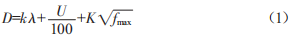 式中,D為導(dǎo)線水平線間距離:A為懸垂串長(zhǎng):U為輸電線路標(biāo)稱電壓:K為系數(shù),檔距1000m以內(nèi)取0.65:k為懸垂絕緣子串系數(shù),具體如表3所示:fmax為桿塔線距所允許的最大弧垂。