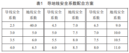 規(guī)范規(guī)定了地線設(shè)計(jì)安全系數(shù)不應(yīng)小于導(dǎo)線的安全系數(shù)。在工程設(shè)計(jì)中不僅需要根據(jù)地線拉斷力選取,還應(yīng)保證與導(dǎo)線弧垂相協(xié)調(diào),本次比選方案的導(dǎo)地線安全系數(shù)配合方案如表1所示。