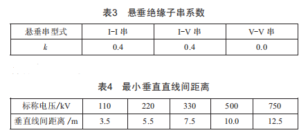 導(dǎo)線垂直排列的垂直線間距離,宜采用水平線間距離計(jì)算結(jié)果的75%。使用懸垂絕緣子串的最小垂直線間距離宜符合表4的規(guī)定。