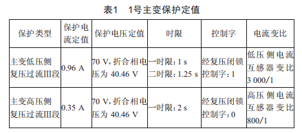 1號主變保護定值如表1所示。