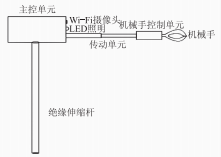一種帶觀察功能的變電站電力設備雜物清除工具,需要由伸縮單元、主控單元、傳動單元、機械手控制單元和機械手組成,各部件能夠?qū)崿F(xiàn)簡單的拆卸和組裝,靈活可靠,各部件材料應簡單輕便,工具整體重量控制在2kg以內(nèi),攜帶方便,工具使用符合人體工程力學原理。