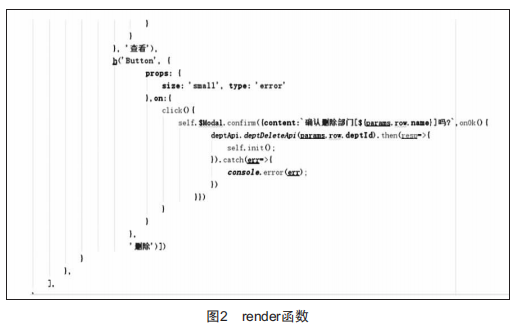 render函數(shù)渲染table組件中的內(nèi)容,直接渲染出查看、刪除按鈕,并在上面綁定點(diǎn)擊事件,如圖2所示。