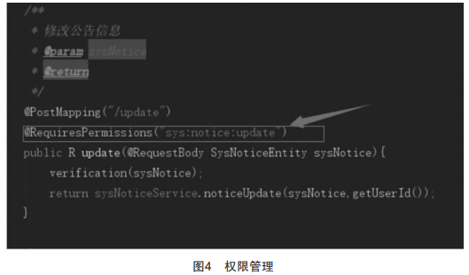 信息推送分為服務(wù)端、Android客戶端和推送平臺(tái),推送平臺(tái)包含了信息推送所使用的ApI,顯示信息推送內(nèi)容的JsP頁(yè)面,通過(guò)頁(yè)面內(nèi)容編輯并發(fā)送信息,具備自動(dòng)推送功能,結(jié)合推送程序完成自動(dòng)推送,圖4為權(quán)限管理。