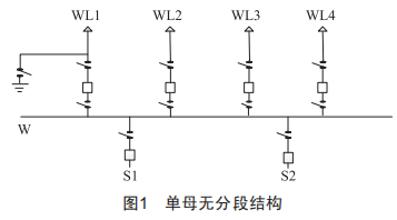 單母接線主要包括單母無分段、單母分段、單母(分段)加旁母等接線形式,其中單母無分段結構如圖1所示。