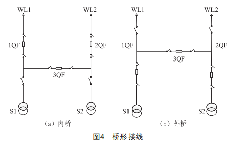 橋形接線分為內橋接線和外橋接線兩種形式,如圖4所示。