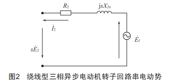 在轉(zhuǎn)子回路中串入一個(gè)與轉(zhuǎn)子電動(dòng)勢(shì)頻率相同、相位相同或者相反的外加三相對(duì)稱附加電動(dòng)勢(shì)E'f,如圖2所示,改變附加電動(dòng)勢(shì)E'f的大小和相位,即可調(diào)節(jié)電動(dòng)機(jī)的轉(zhuǎn)速。