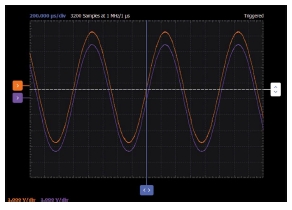 波形發(fā)生器W1配置為1 kHz正弦波,峰峰值幅度約為6 V,偏移為0。將正電源(Vp)設(shè)置為+5 V,將負(fù)電源(Vn)設(shè)置為-5 V。使用示波器通道1觀察W1的輸入,使用示波器通道2觀察放大器在RL處的輸出。圖3為Scopy波形圖示例。