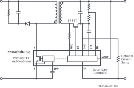 圖1:InnoSwitch3-AQ 1700V器件可實(shí)現(xiàn)簡(jiǎn)單、加強(qiáng)絕緣的汽車電源