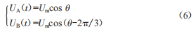 根據(jù)這一反饋控制參數(shù),高速電梯的輸出電壓所存在的矢量UA、UB電壓大小隨時(shí)間按正弦比變化。若Um為相電壓峰