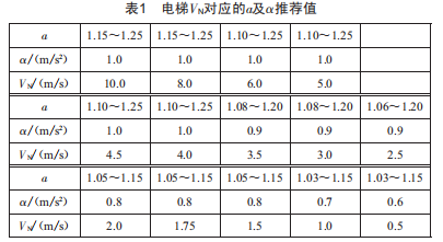 而電梯速度VN與對應(yīng)的速度系數(shù)a及加速度α推薦值如表1所示。