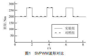 根據(jù)上述實(shí)驗(yàn)方法進(jìn)行實(shí)驗(yàn),兩組實(shí)驗(yàn)SVPWM波形對比如圖1所示。