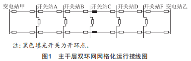 (1)如圖1所示主干層按雙環(huán)網(wǎng)網(wǎng)格化建設(shè)運(yùn)行四回線路來(lái)自兩個(gè)變電站同一變電站出線的兩回線路來(lái)自同一段母線。