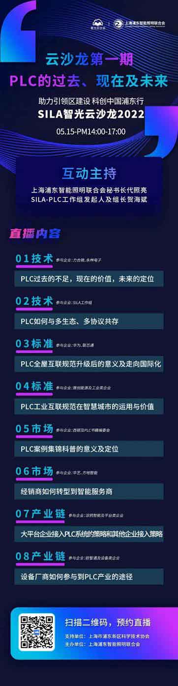杭州市 – 2022年5月13日 –由上海浦東智能照明聯(lián)合會(簡稱SILA)主辦的智光云學(xué)堂,2022年第二期的主題訂定為PLC專場,邀請SILA-PLC工作組成員們輪番上陣宣講PLC在照明領(lǐng)域之應(yīng)用,一共舉辦4期云學(xué)堂的線上演說與1場線上的智光云沙龍專題研討會。其中,杭州聯(lián)芯通半導(dǎo)體有限公司(簡稱聯(lián)芯通)在智光云學(xué)堂中發(fā)表「PLC芯片產(chǎn)業(yè)及互聯(lián)互通機(jī)制簡介」,并在智光云沙龍中與華為共同參與討論「PLC全屋戶聯(lián)規(guī)范升級后的意義及走向國際化」,聯(lián)芯通身為PLC芯片設(shè)計、制造公司,期許能經(jīng)由推廣PLC芯片的應(yīng)用、助力引領(lǐng)區(qū)建設(shè)。